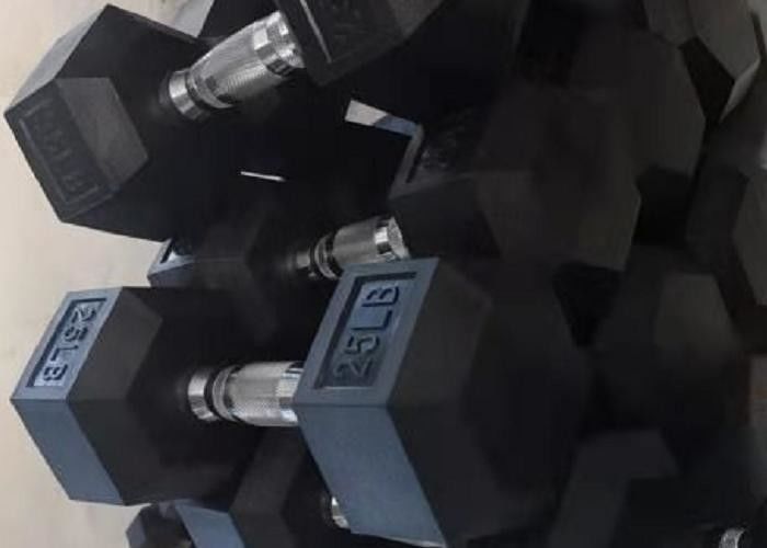 六角形5-100lbsの体育館の黒のゴム製 ダンベル/体育館の付属のゴム製 ダンベル